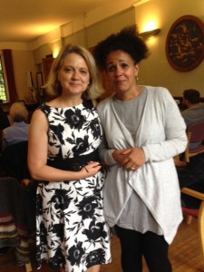 Once Steven had invited me to take part, and I’d said I’d be able to attend the Dartington stop of the tour, my starting point was finding another poet to work with and I was thrilled that Louisa Adjoa Parker agreed to be my partner. We’d never met but had been in touch via social media, and Louisa had sent work to And Other Poems. We’re both South West poets: Louisa currently lives in Dorset and I live in west Wiltshire, and we both have friends in and near Dartington – an important consideration when you’re in need of a friendly place to stay away from home! I was able to stay with my lovely friend Emily and it was a brilliant opportunity to catch up with her. Incredibly, although she and Louisa didn’t know each other, it turned out they’d both spent some of their teenage years in Totnes and had several friends in common. So we all got on well together and were able to share a delicious picnic in the grounds of Schumacher College, Dartington, before the readings began.