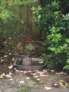 We have several pairs of fat pigeons that live in and around our gardens. My neighbour feeds them, they come to us for a drink and a bath. The bath is just a large pot plant saucer, when they are sat in t they look oven ready. This year for the first time we have a birds nest in the tree in our front garden. Yes, you guessed it – Mr and Mrs Fat Pigeon have chosen us to build their scruffy next. Up to now, we have not seen any baby birds. We live in hope!